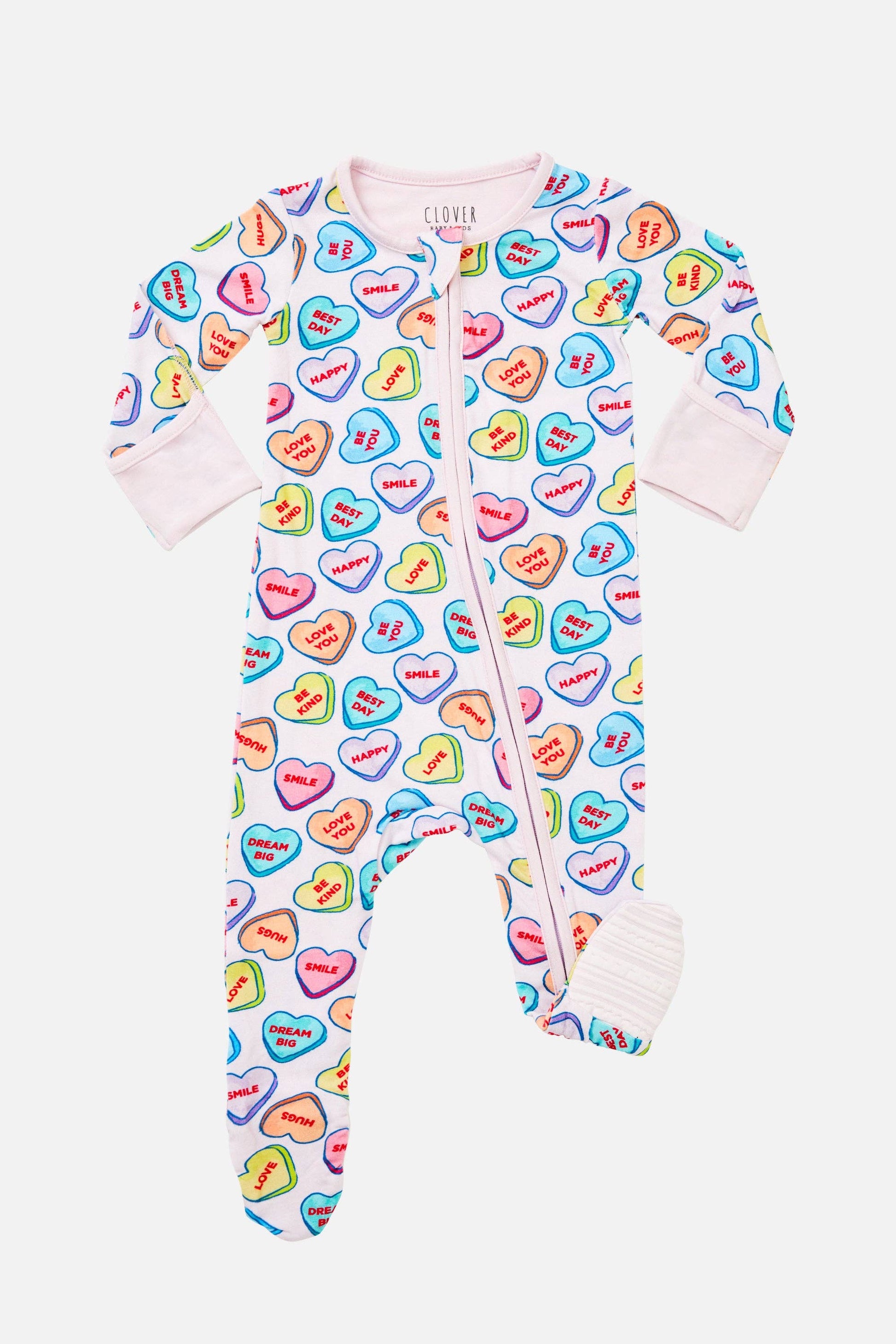Clover Baby & Kids - Soft & Stretchy Zipper Footie - Candy Hearts