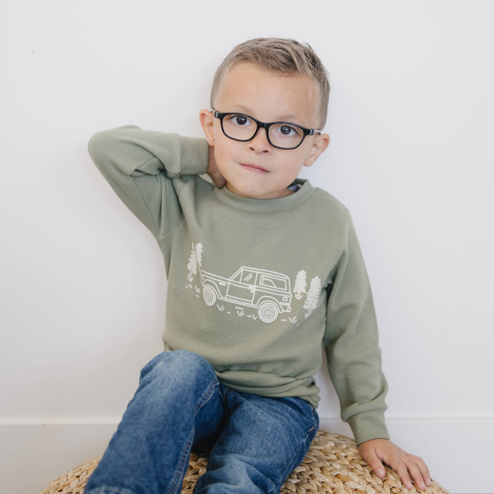 Sage off-road graphic crew neck, pair with our joggers for the cutest set!