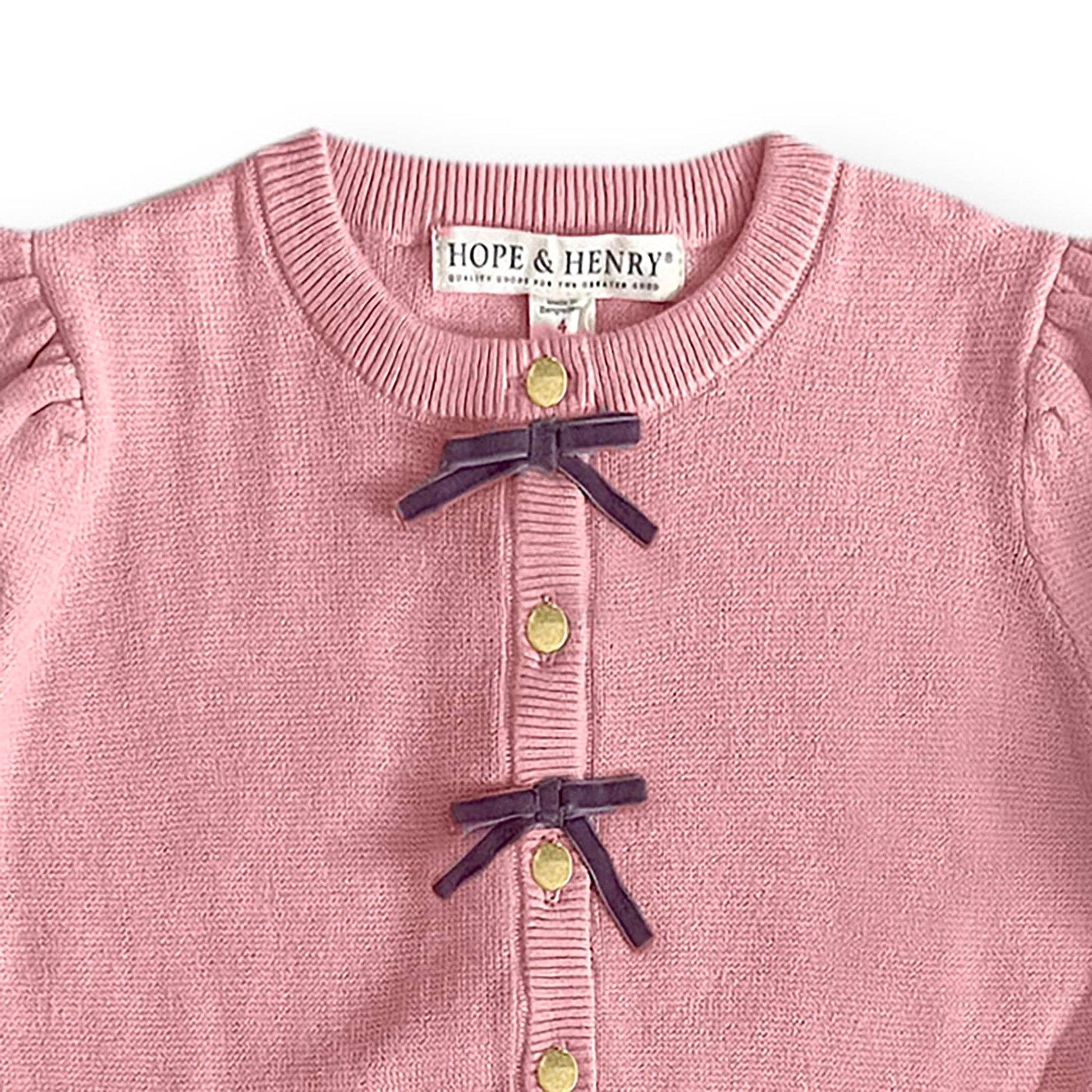 Your girl will be so chic in our soft organic cotton button front sweater dress. Features feminine puff sleeves and a button front with beautiful bow details. An absolutely darling look that is perfect for the holidays and beyond.