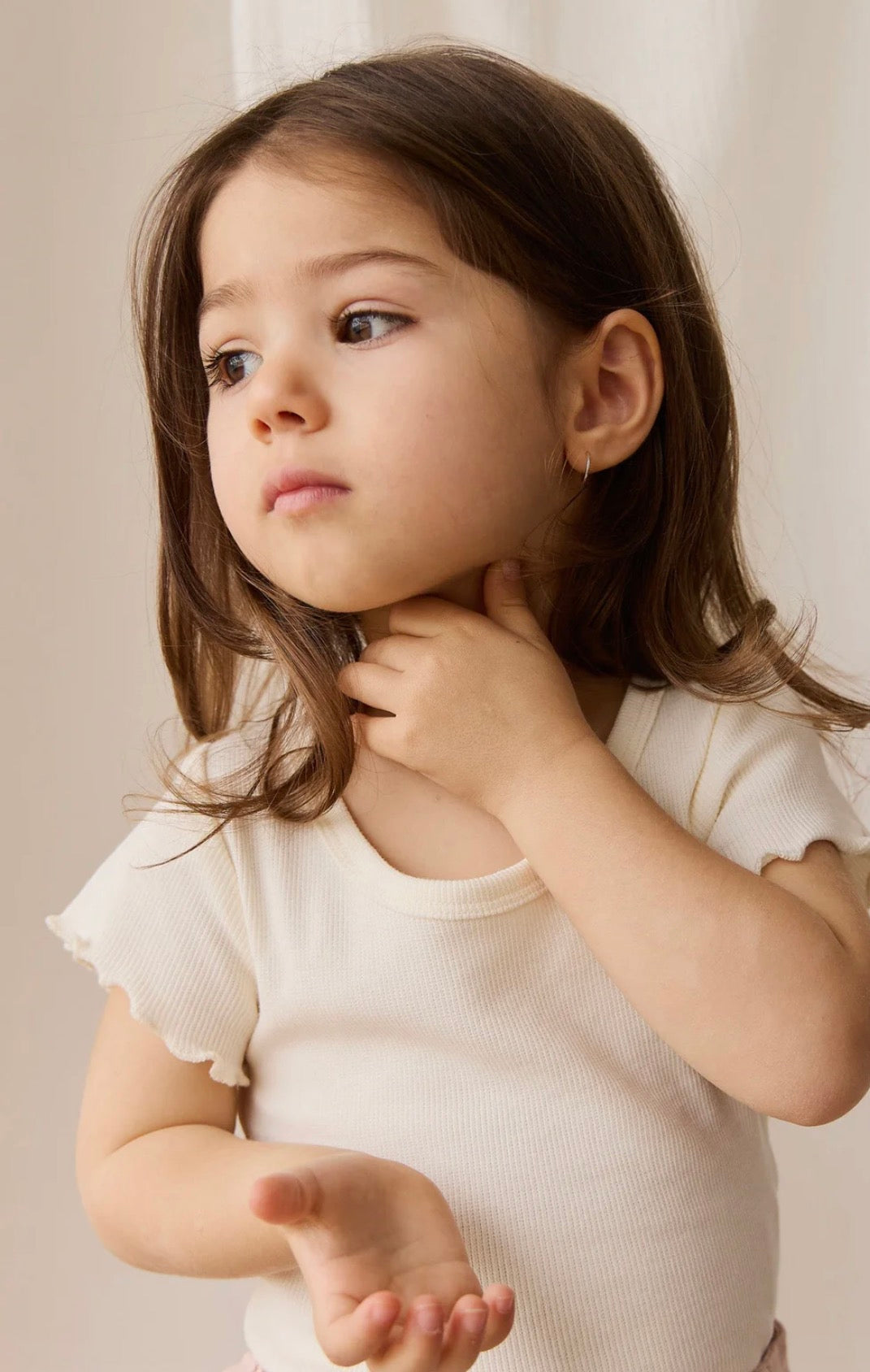 A dainty essential for everyday wear, the Fine Rib Cotton Ines Top – Parchment features an off-white hue, fine rib texture, and delicate scalloped edges at the hem and sleeves. With a classic round neckline and a gentle stretch, this top is perfect for layering or wearing on its own.