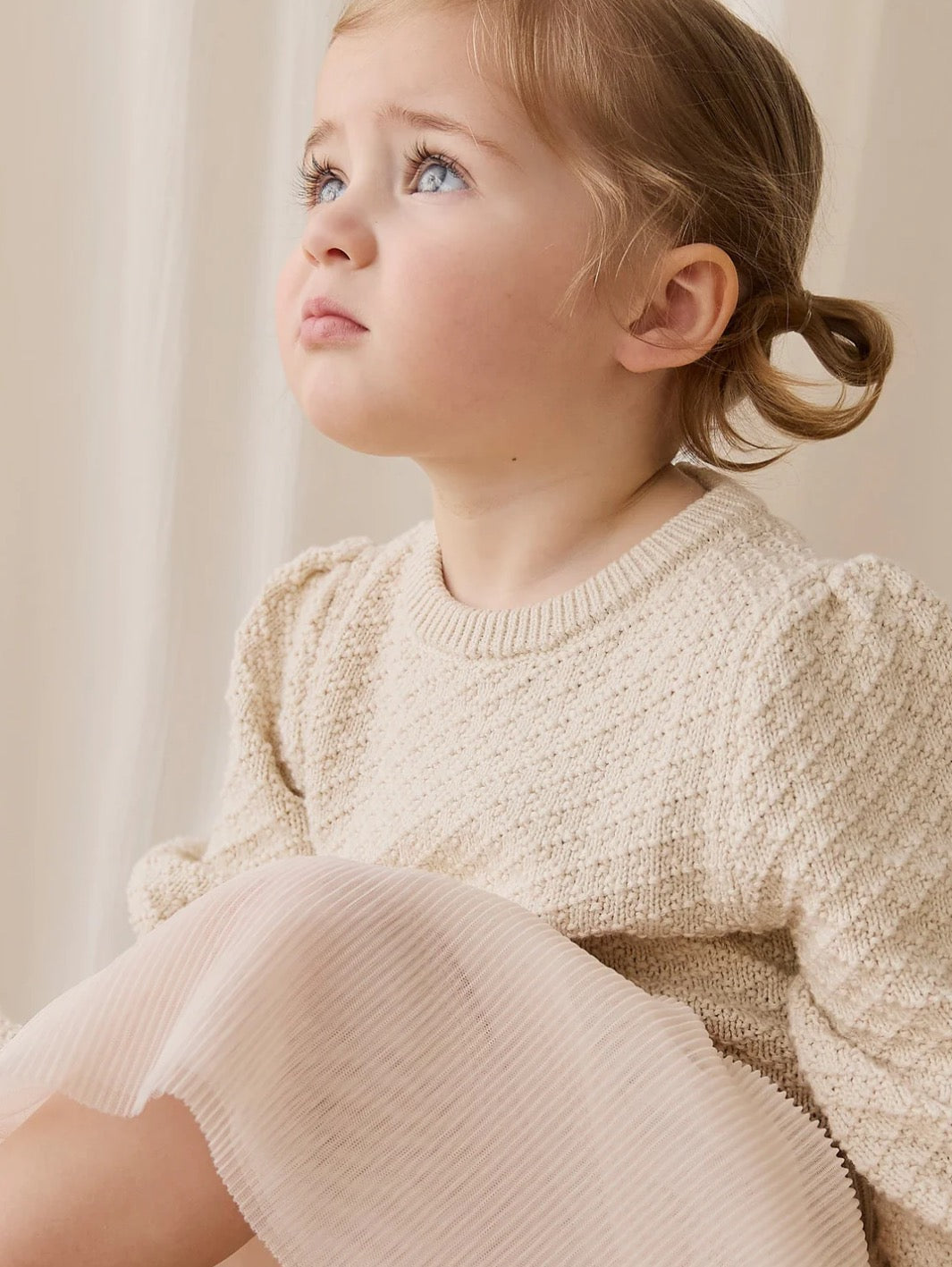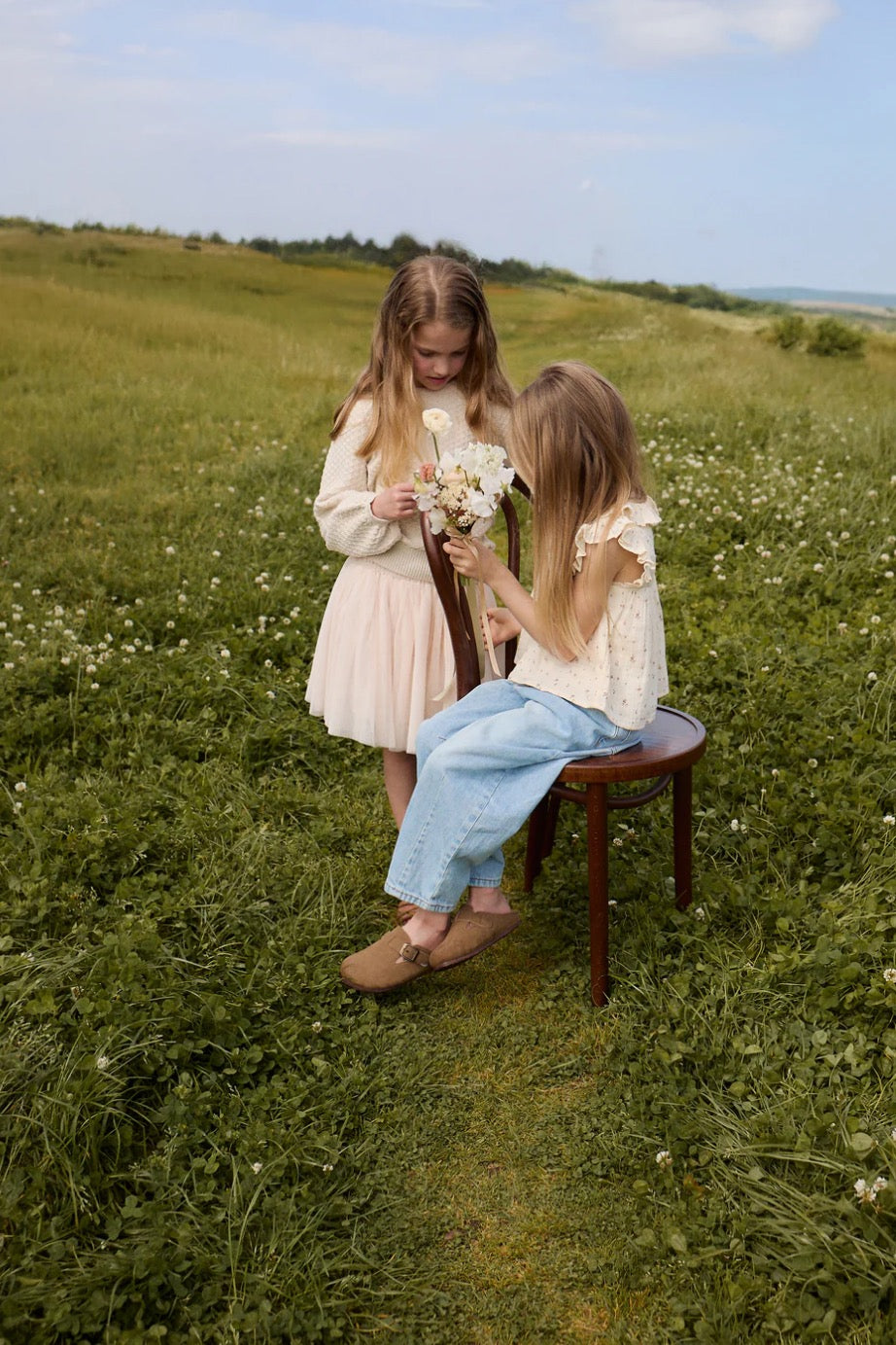 A timeless knit for cooler days, the Harlow Jumper – Vanilla features a soft cream hue, textured knit pattern, and classic round neckline. With ribbed cuffs and hem, plus a sweet button closure at the back, this jumper is both practical and beautifully detailed.