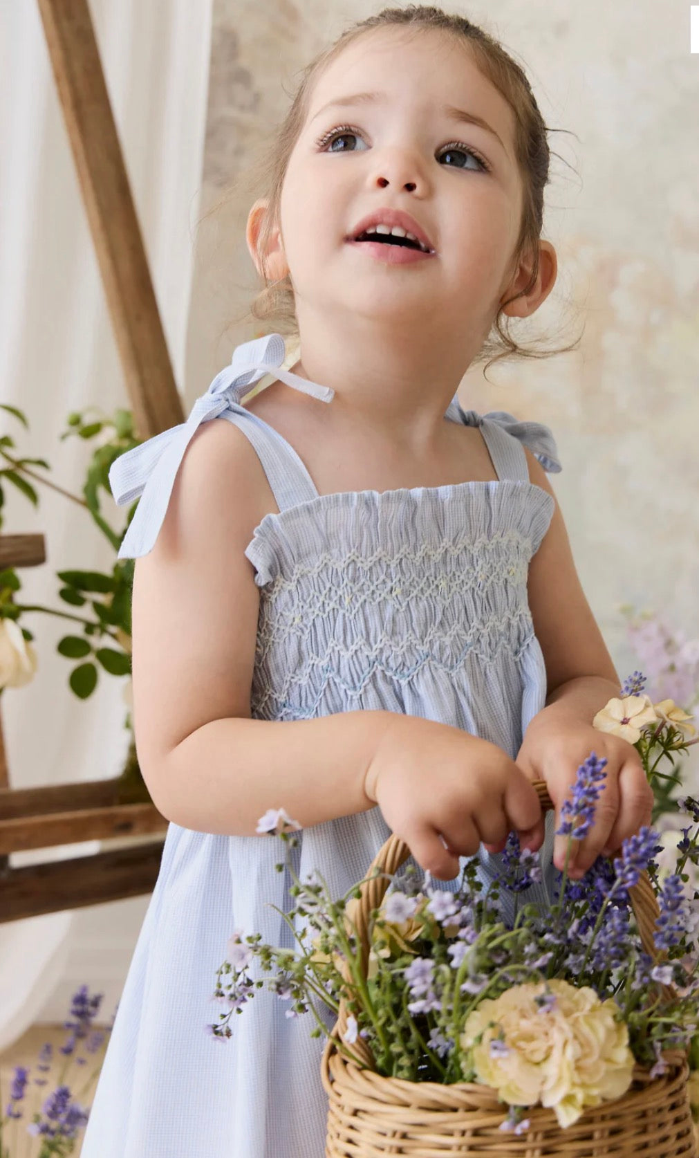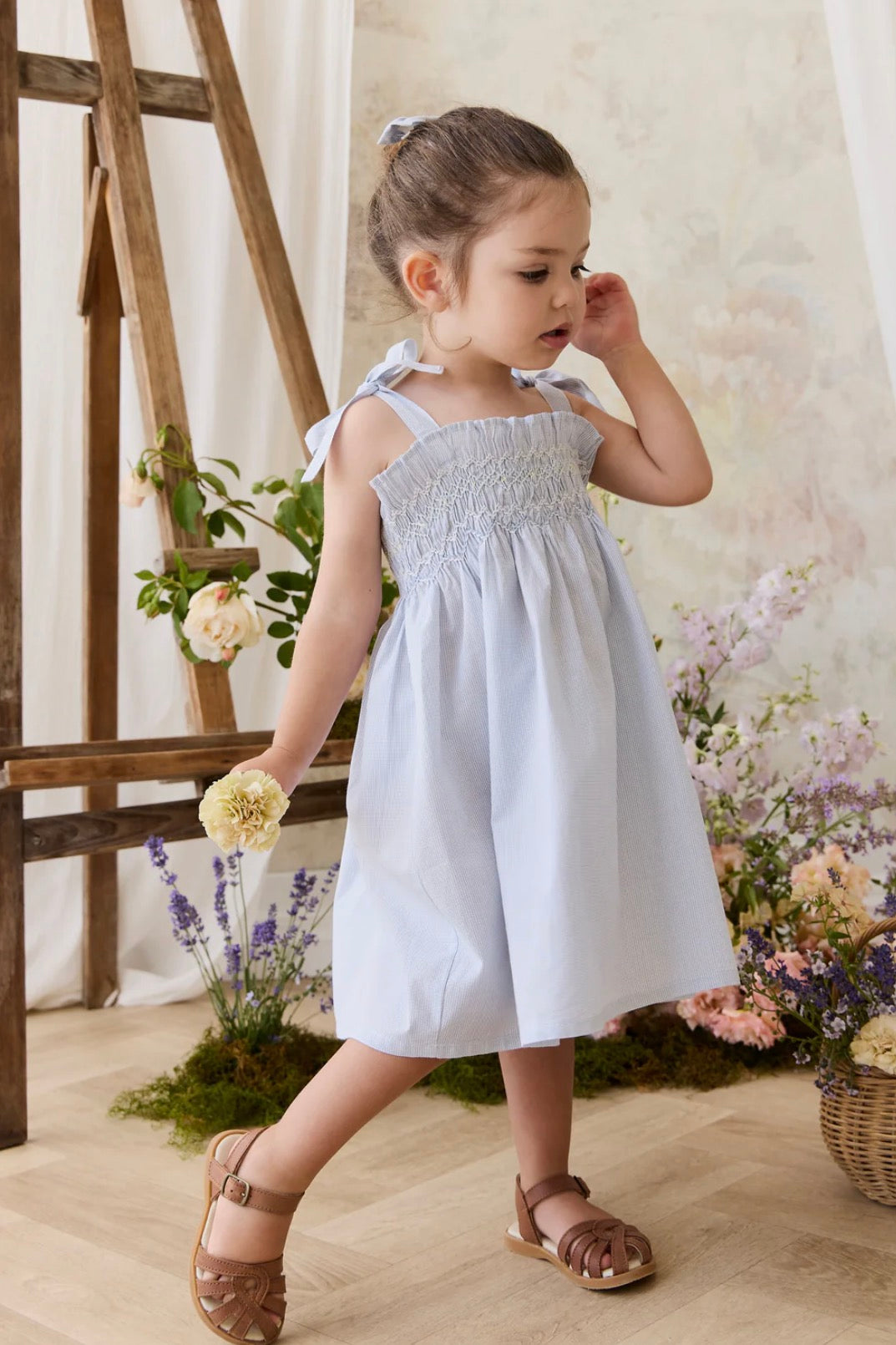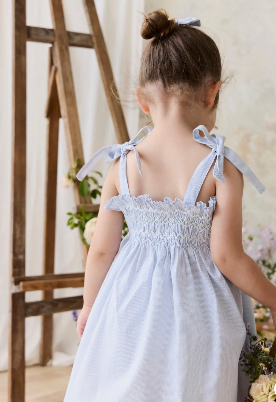 The Desiree Dress in our charming Petite Check print is a delicate and classic piece, perfect for any occasion. Featuring a beautifully smocked bodice with intricate stitching and sweet tie straps, this dress is designed for comfort and elegance. The flowy skirt adds a touch of grace, making it ideal for playdates or special moments.
