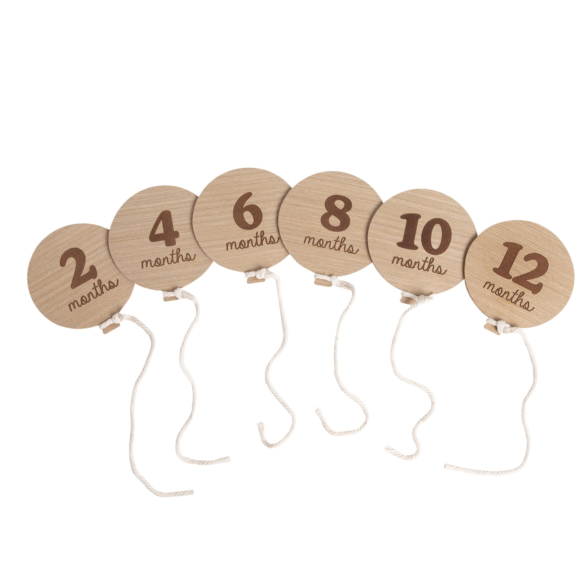 • Birthday Balloon Shape: Includes 6 double sided wooden prop cards labeled "one month" through "twelve months" on balloon shaped cards with braided rope cotton string attached to create adorable newborn photos