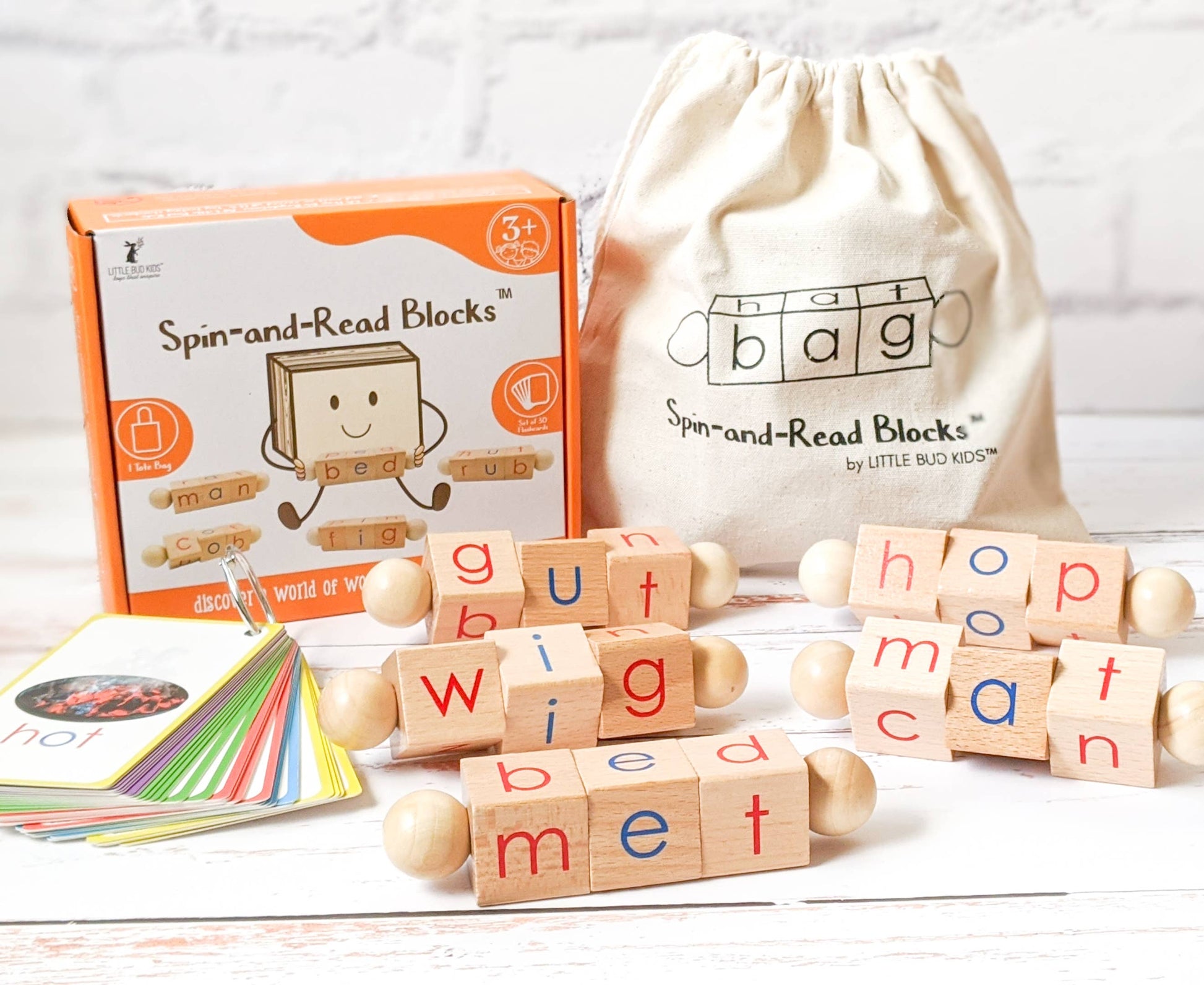 Little Bud Kids - Spin-and-Read Montessori Phonetic Reading Blocks & CVC Cards