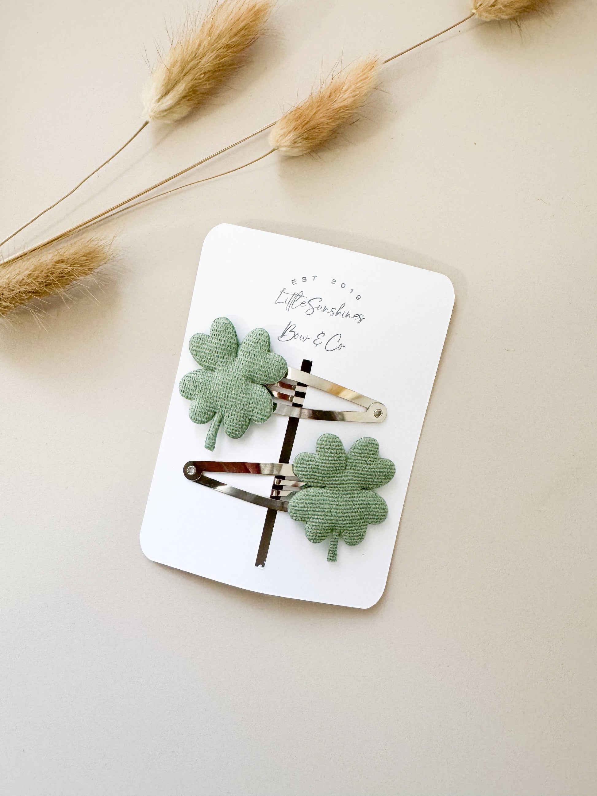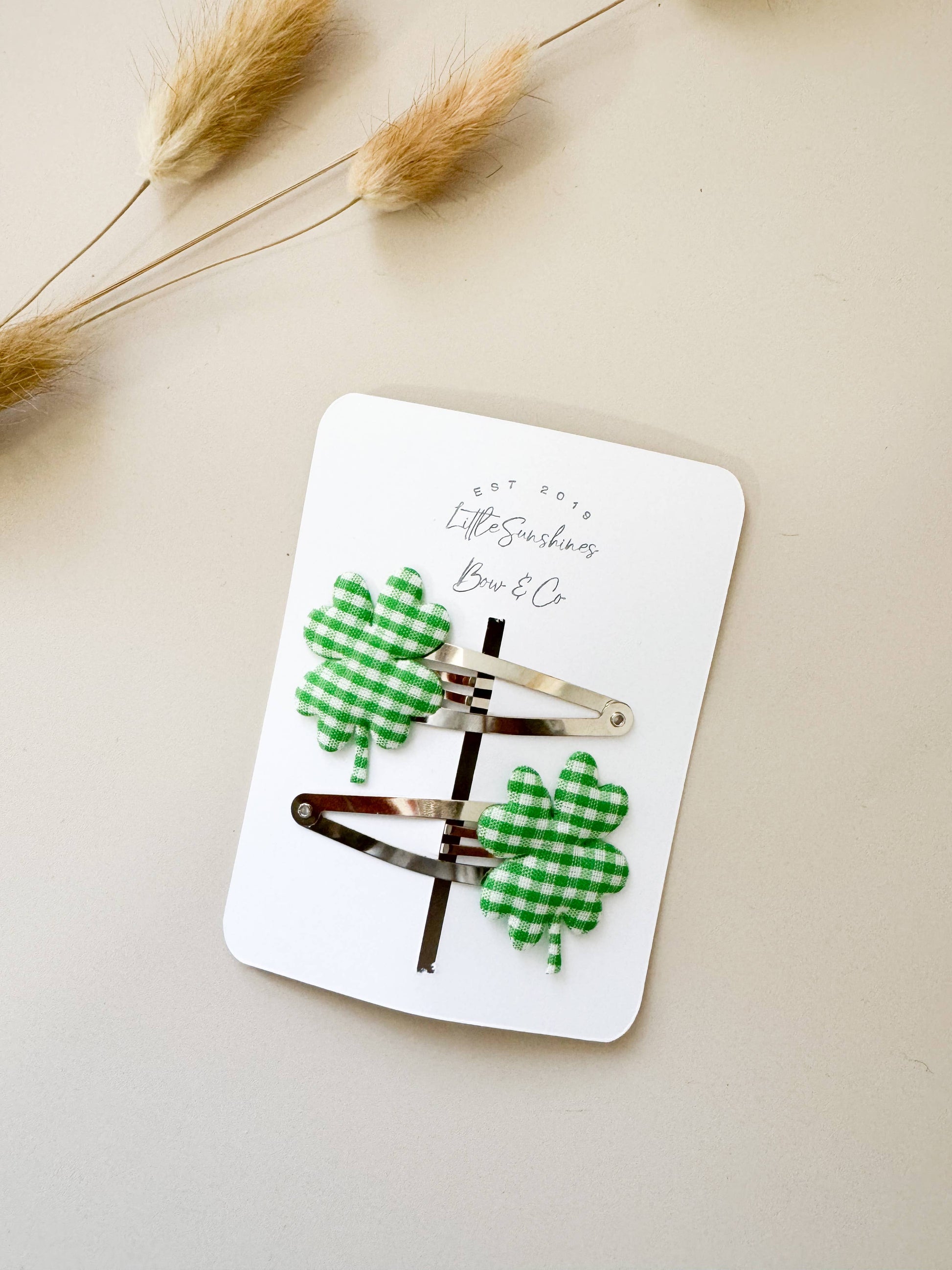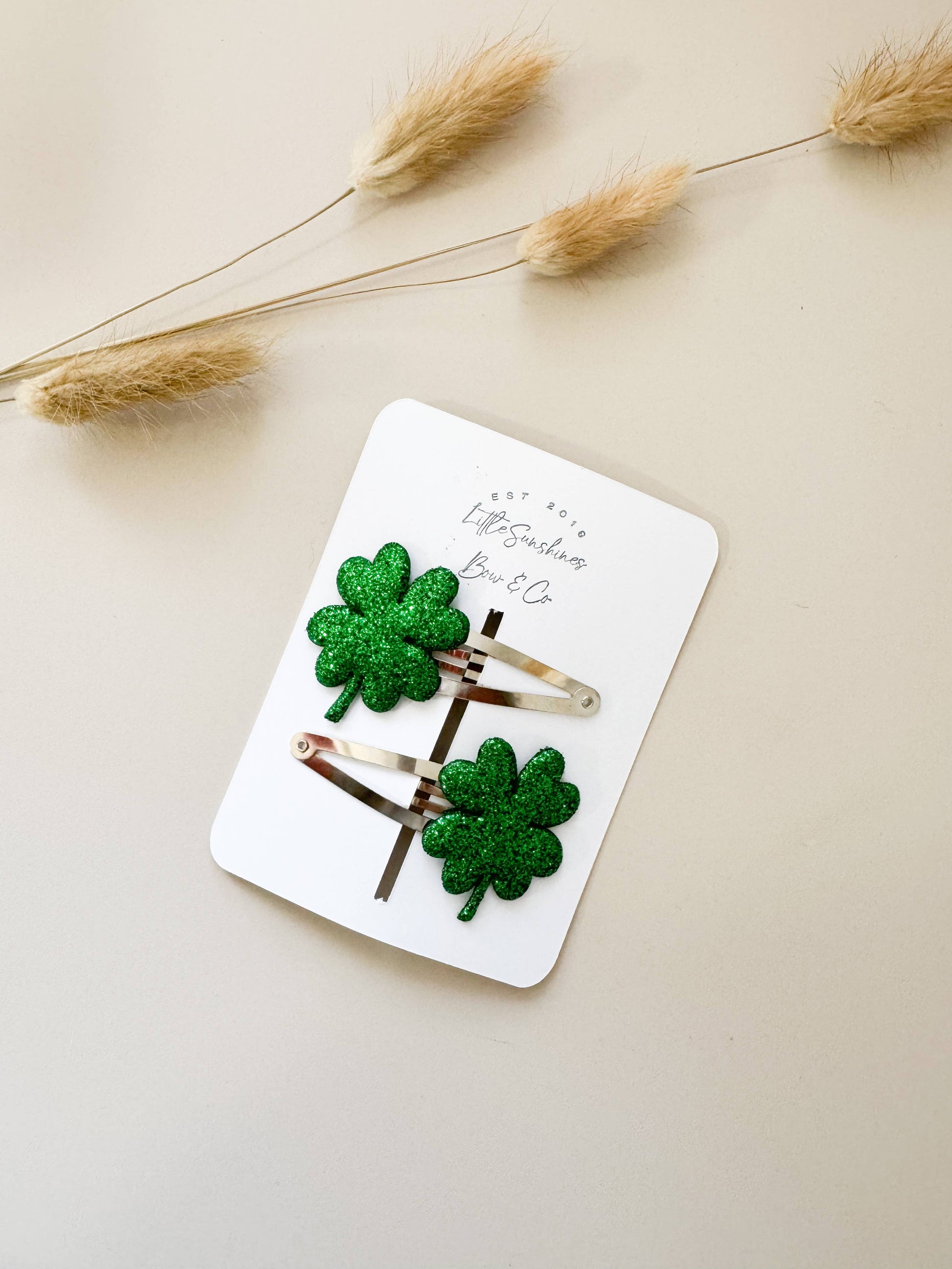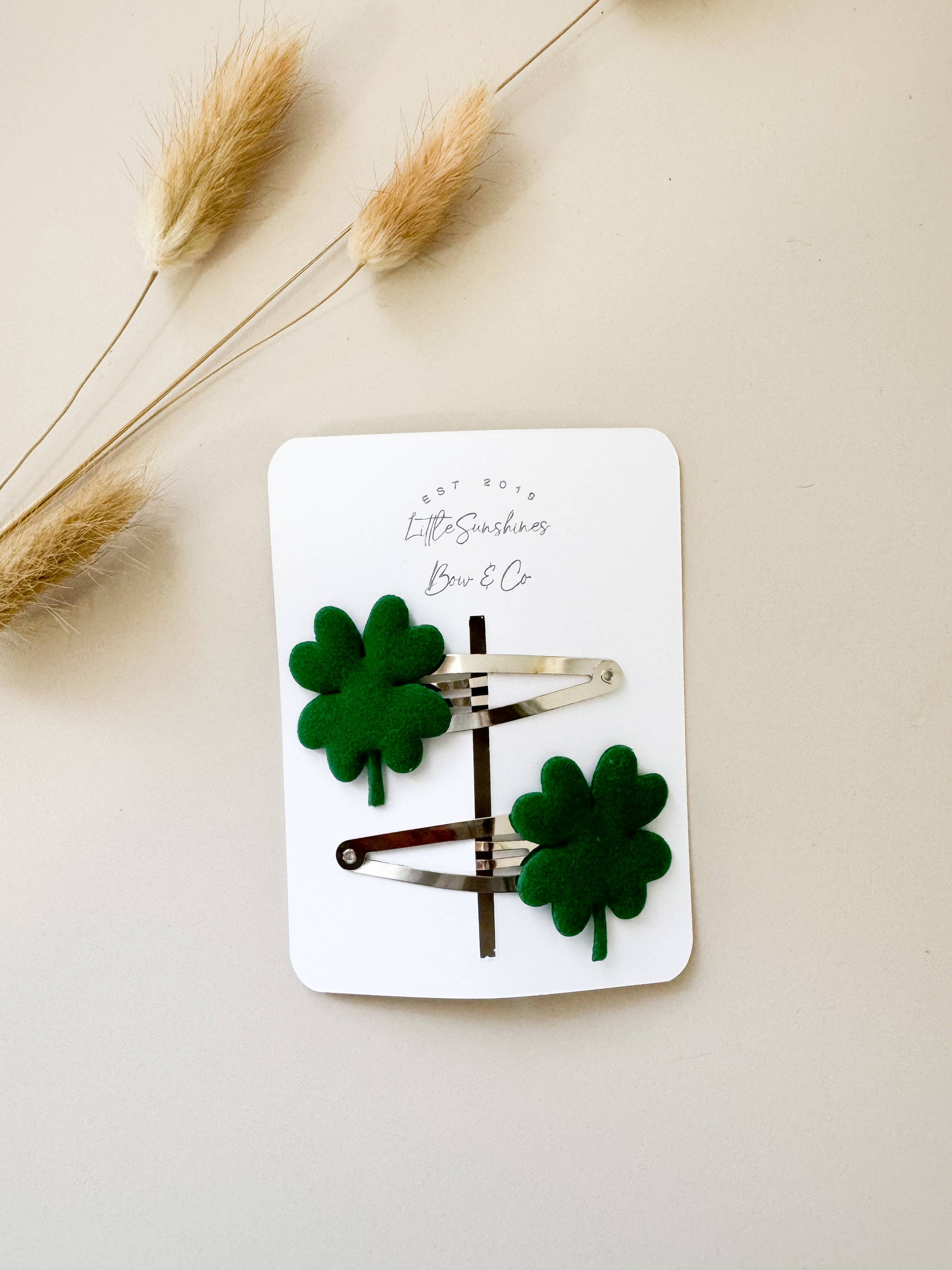Little Sunshines Bow & Co - St Patricks Day Four Leaf Clover Snap Clips- Set of 2