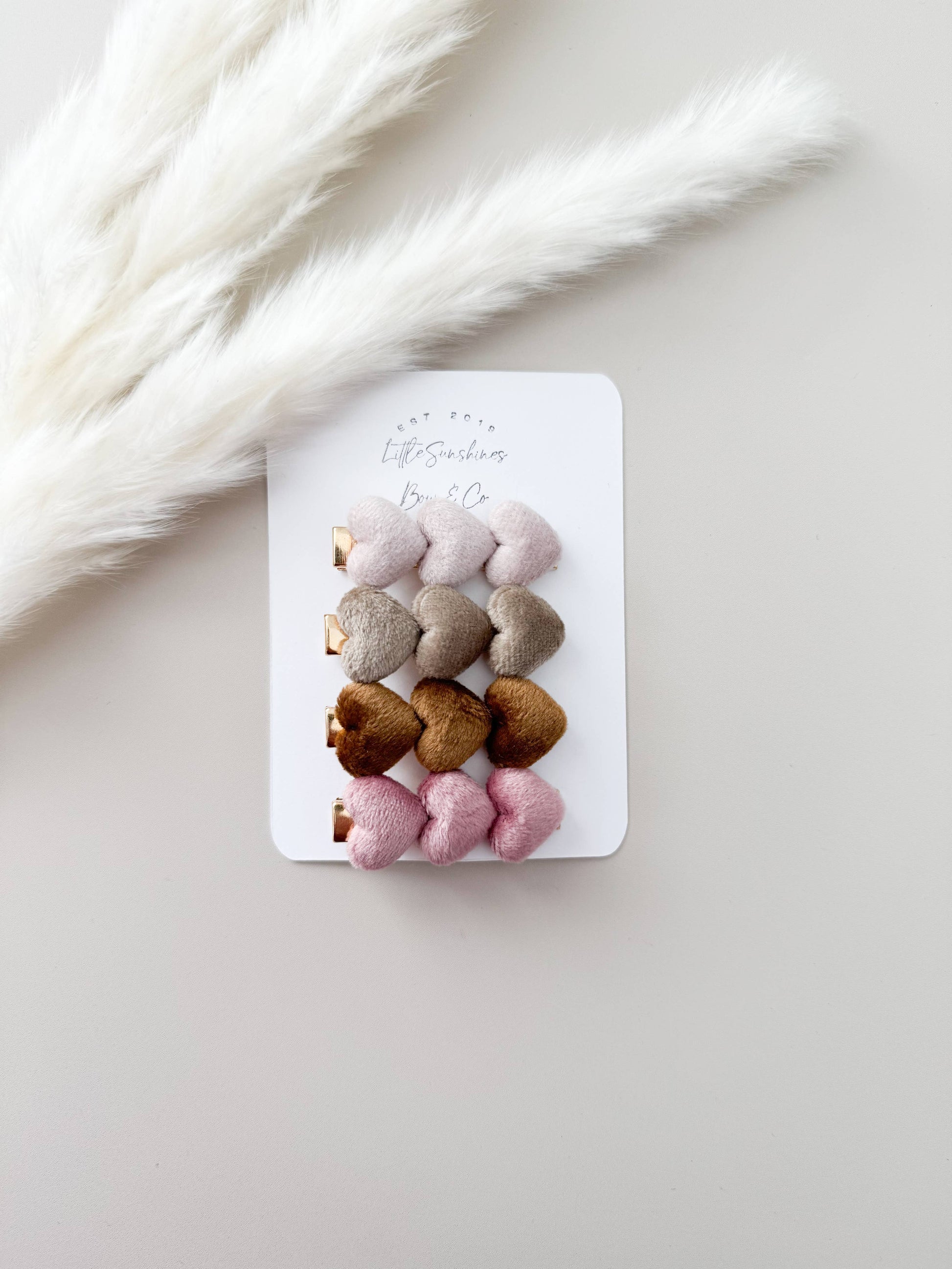 Little Sunshines Bow & Co - Velvet Heart Hair Clip Sets- Sets of 4