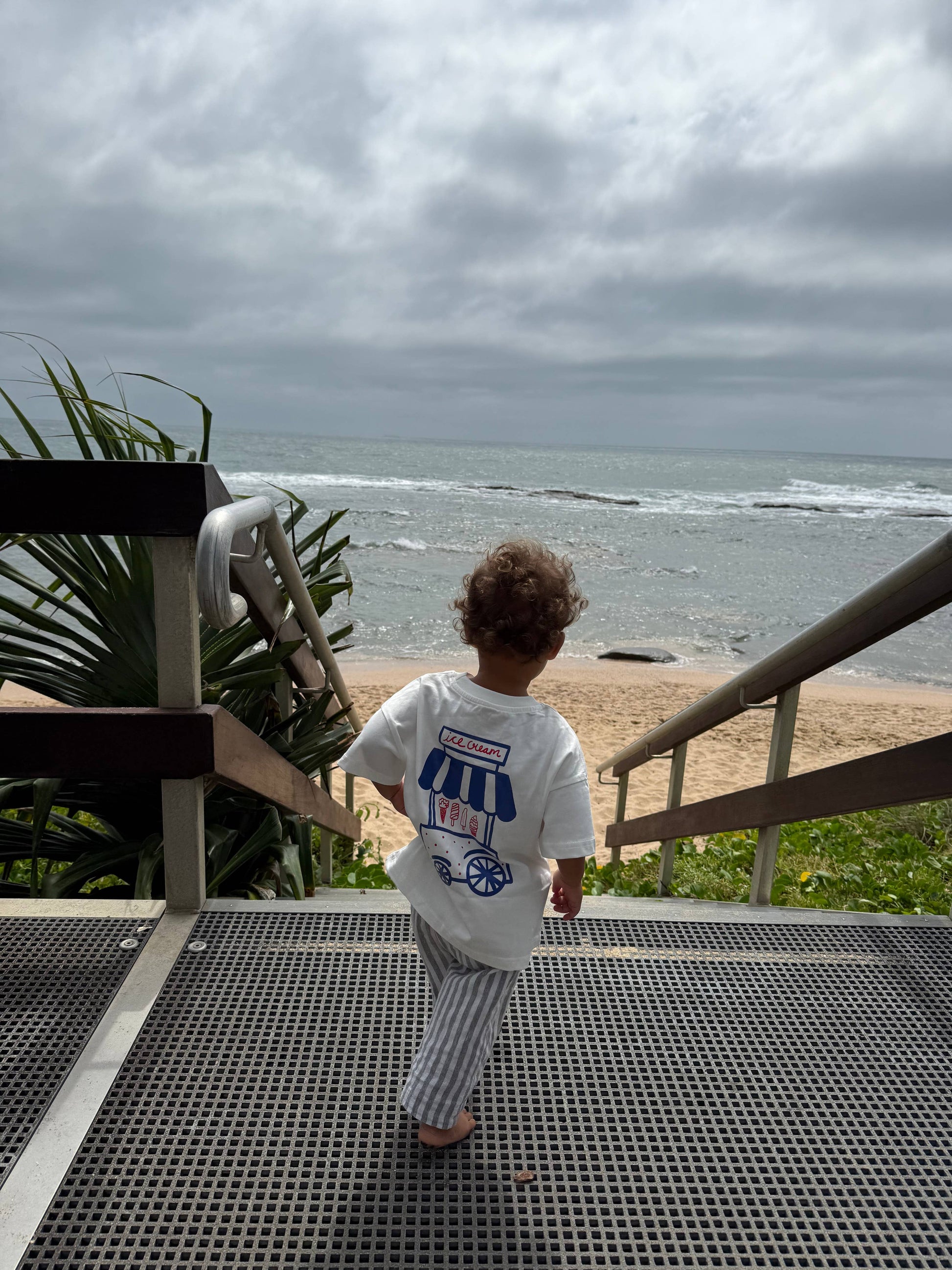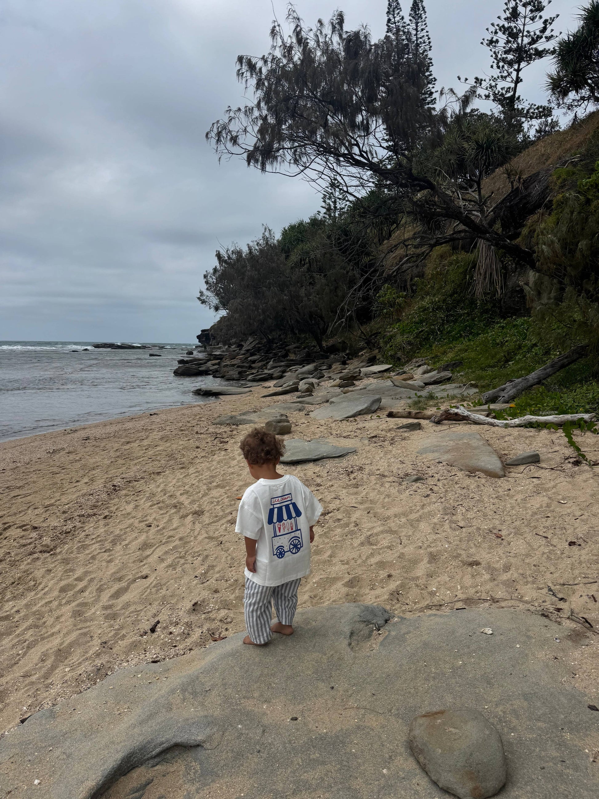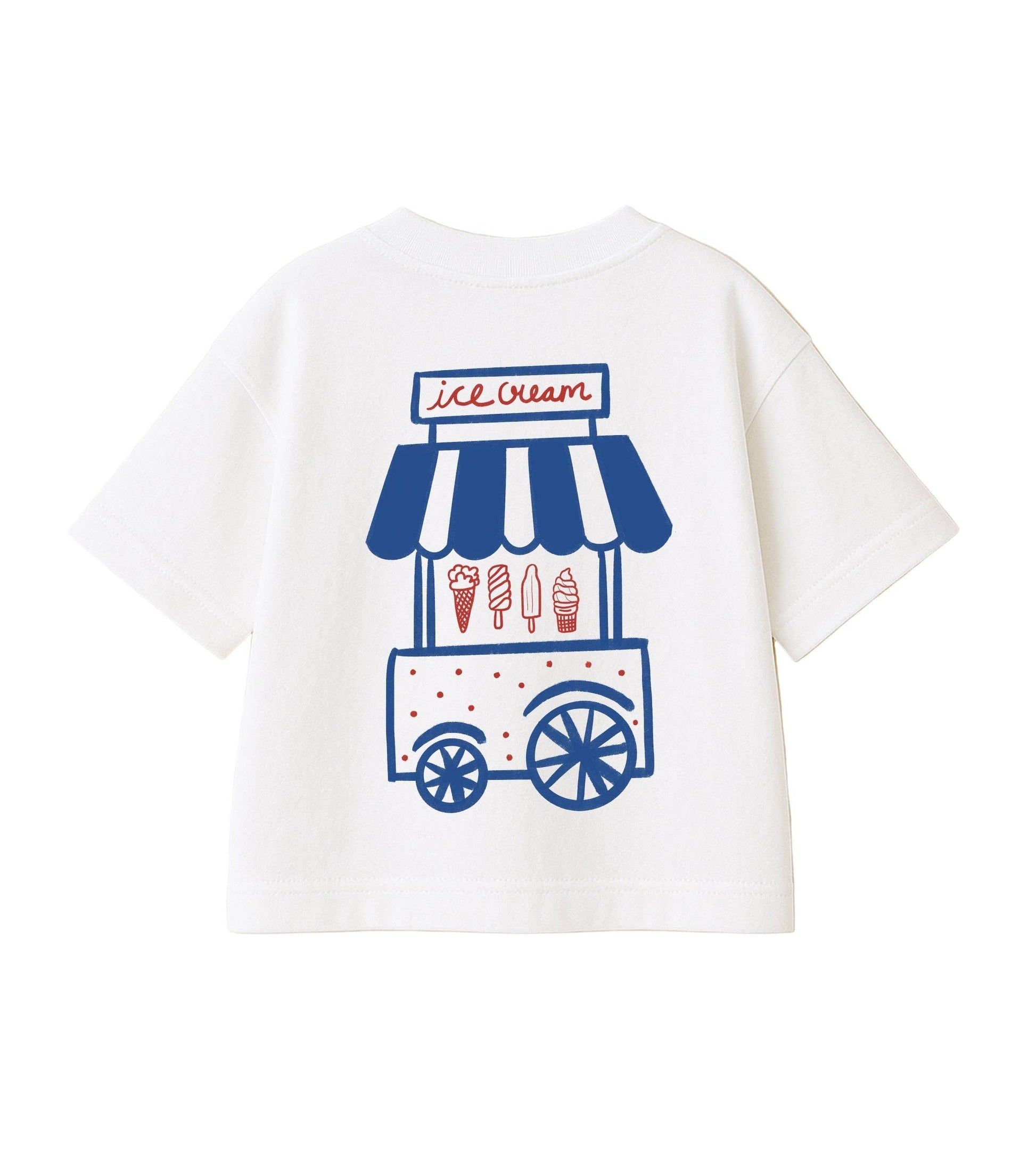 Because some days just feel like a double scoop. This creamy cotton tee features a vintage-inspired ice cream cart print that’s serving up all the vacation feels. It’s sweet, nostalgic, and guaranteed to make your little one the coolest kid on the playground (no cone required).