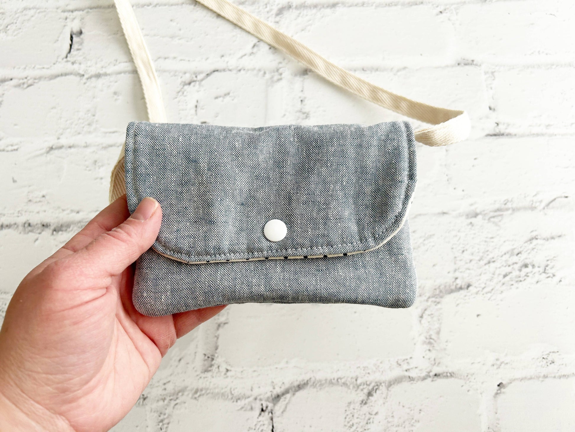 This purse is perfect as a kids purse or toddler crossbody bag. The bag is made with quilting cotton as the exterior and interior of the fabric and has a thick interfacing to make it sturdy by soft. The strap is made from cotton twill and has a strong plastic snap.