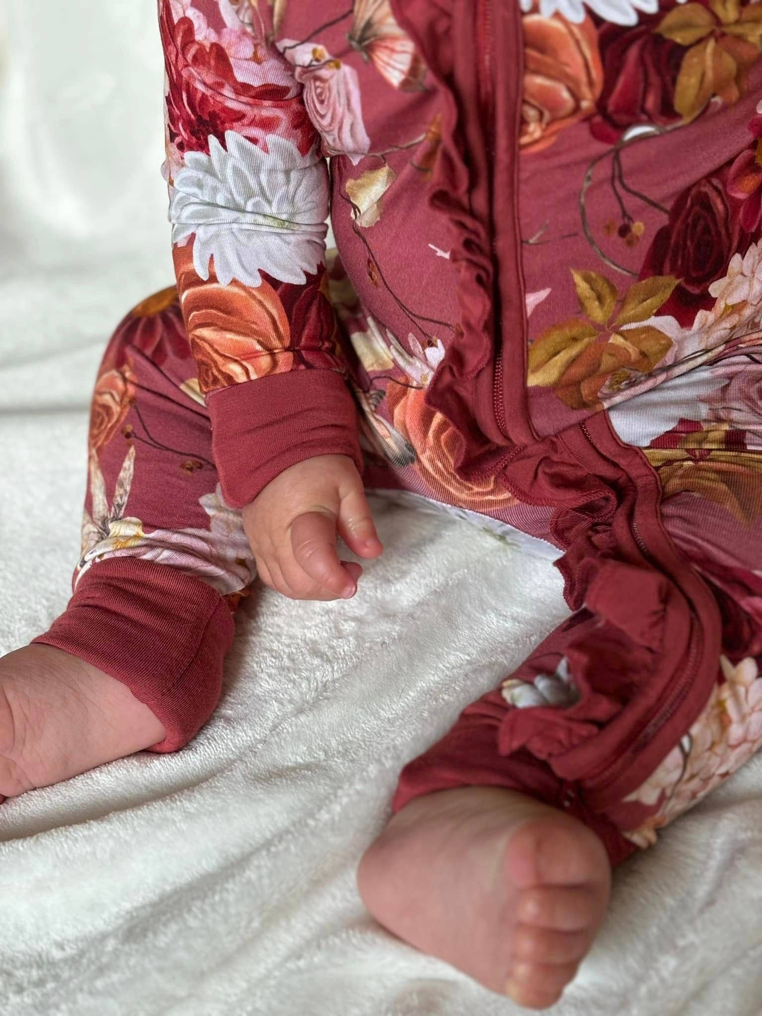 The Autumn Fairy Blooms Convertible Ruffle Zippee by Riley & Rett is a stylish and comfortable sleepsuit designed for your little one. Crafted to celebrate siblings and sunshine, this sleepsuit is perfect for snoozing or a day out. The convertible design allows for easy dressing and undressing. With its charming ruffles and autumn fairy blooms print, it's sure to make your baby smile. Available in various sizes, it's a perfect addition to any baby's wardrobe.