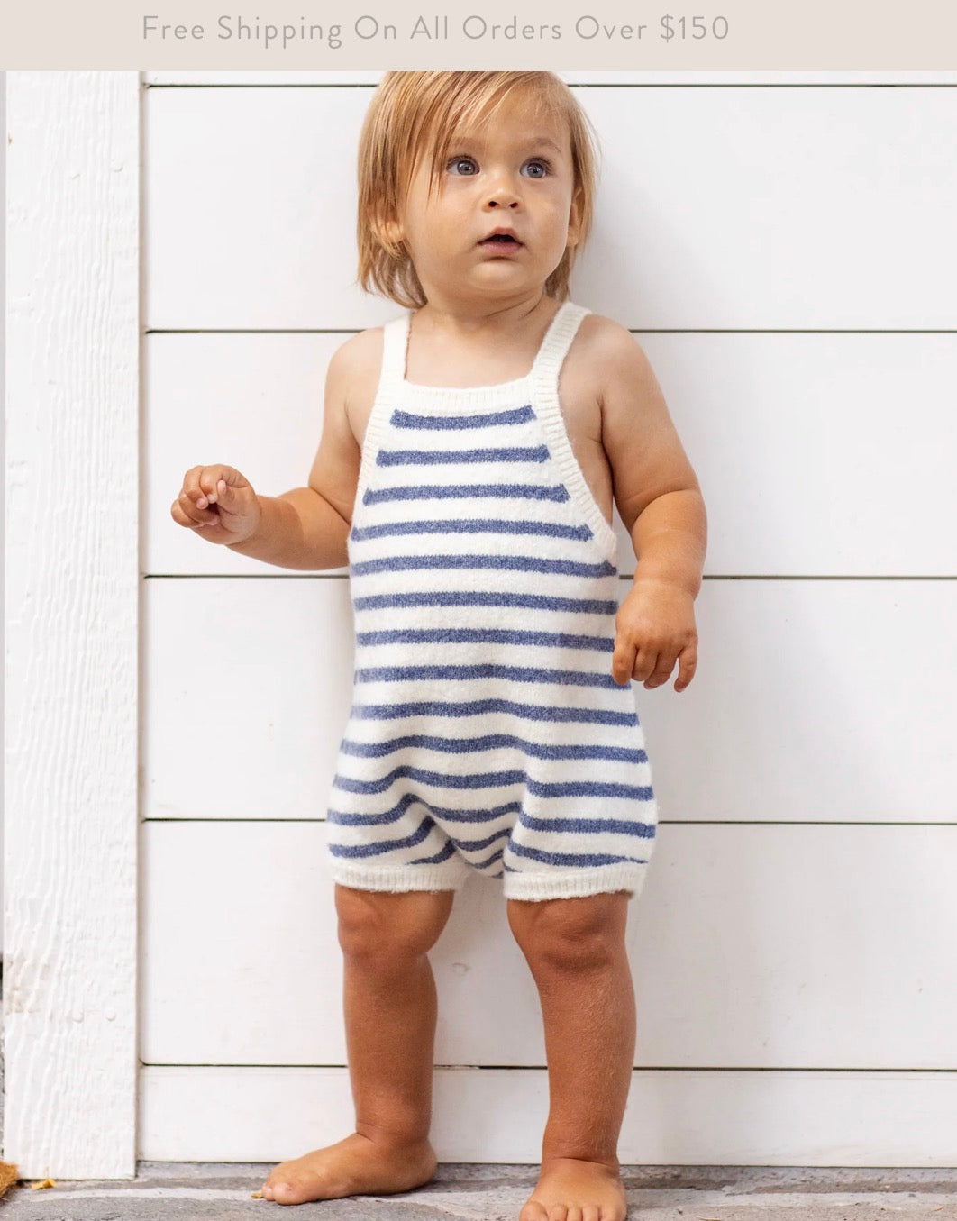 Perfect for warmer weather, our Fisher Romper is a simple and easy look for your little ones. Designed with ribbed criss cross straps and coconut buttons.