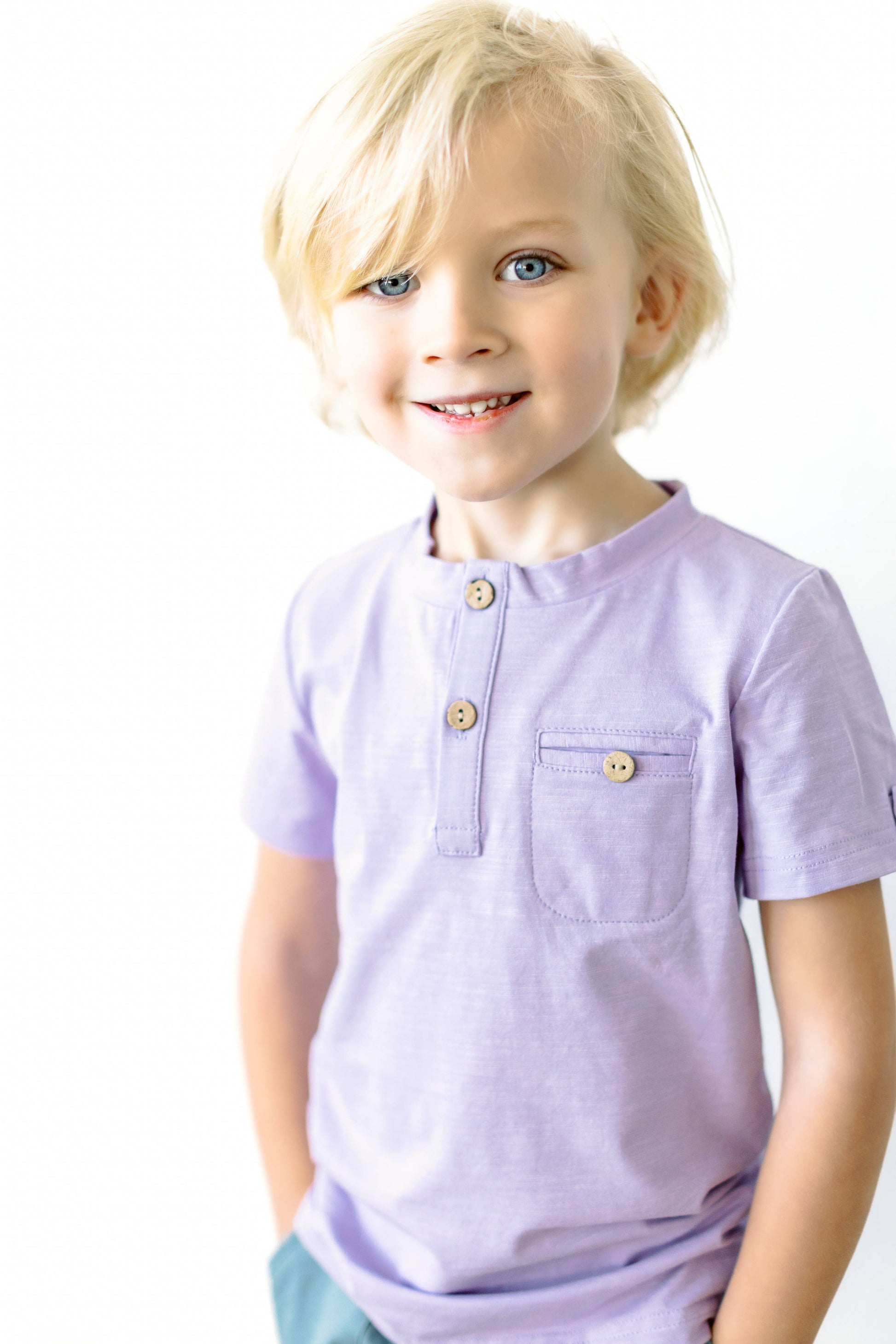 Boys Lavender Short Sleeve Shirt, Soft, Buttons, Sensory Friendly