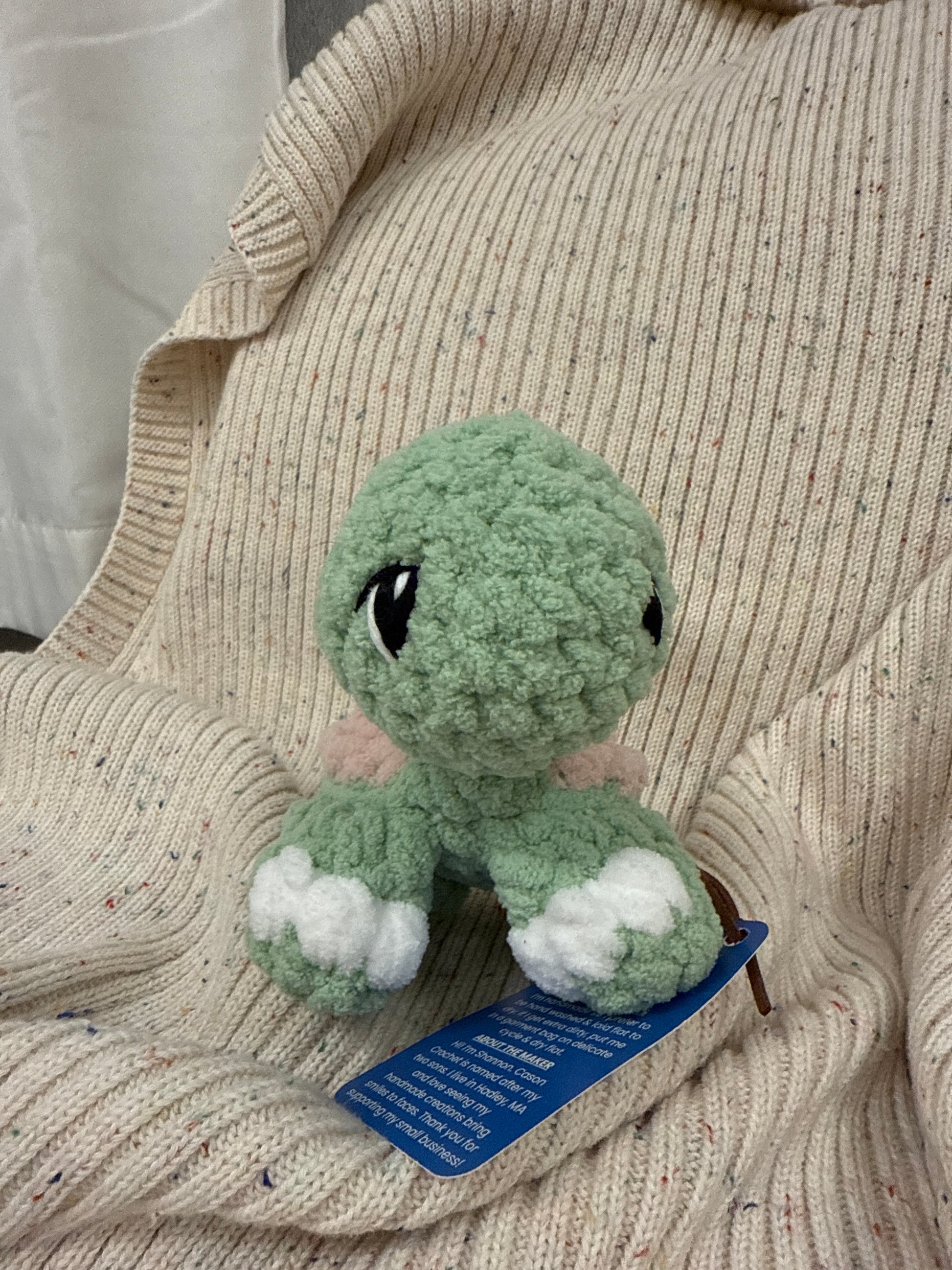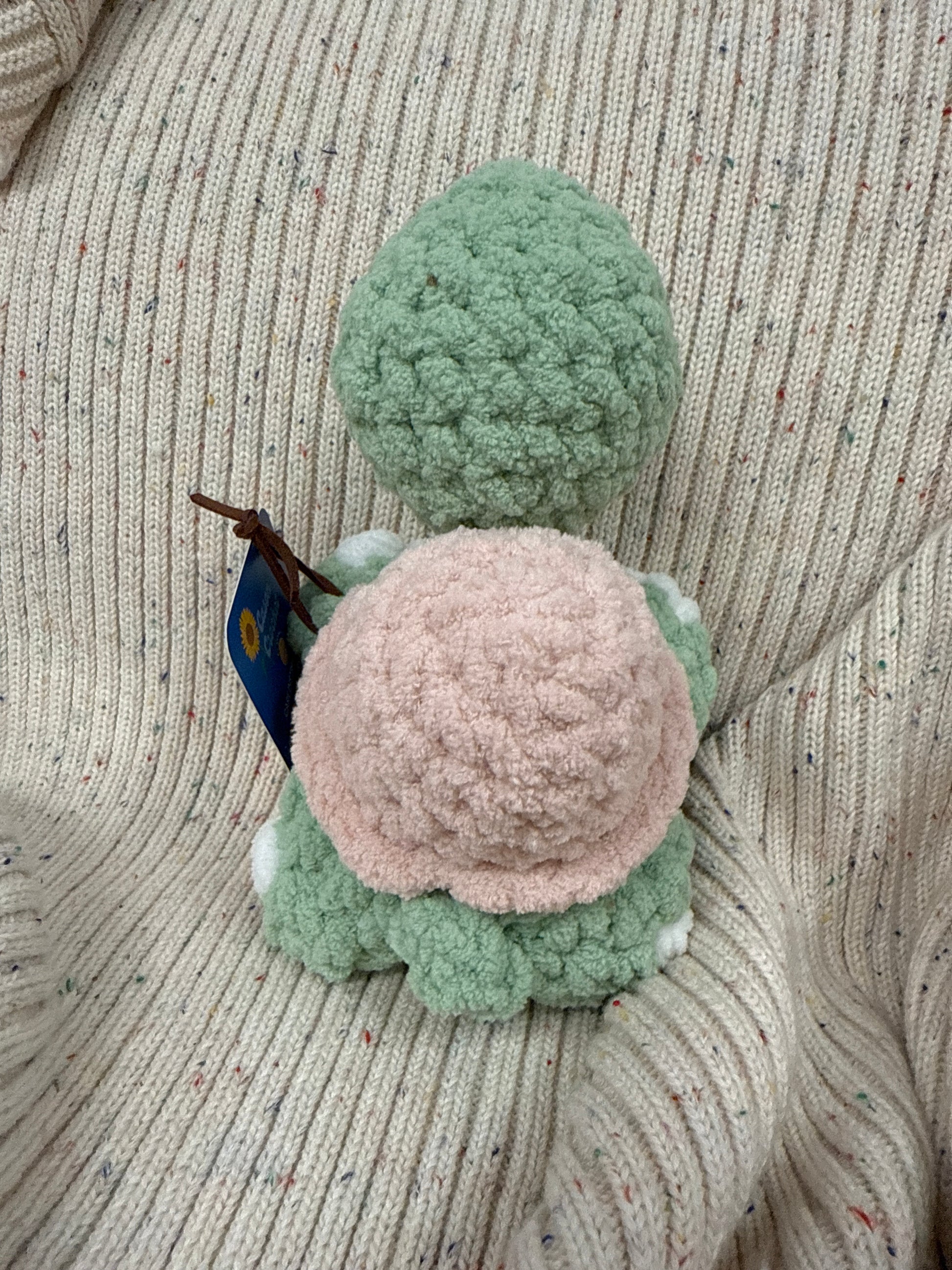 Cason Crochet Handmade Crochet pink shell turtle. 4 1/2” tall and 6” nose to tail.