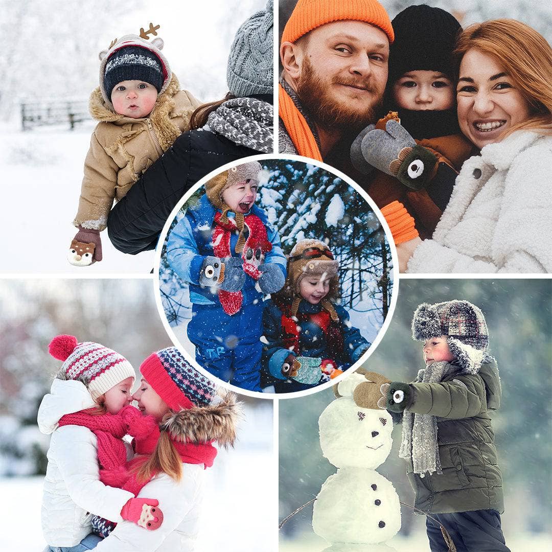 These soft knit mittens are super comfortable for those little hands and are super fun for your child. Our mittens are made from soft breathable premium-quality acrylic and polyester with an ultra-soft Sherpa lining. Benefits: * Fun and cute bear design your child will love * Comes with a 32-inch string to prevent lost mittens * Thick and premium-quality breathable soft-knit material * Mitten interior is designed to keep your babies' hands warm * Provides a comfortable snug fit * Perfect for Fall and Winter outings or to wear just for fun * Product Description: * Sizing: * TYPICALLY FITS 0-3 Years Infant Baby, toddlers, boys, and girls * The maximum length of gloves is 6.0 inches * Imported * 45% Soft Acrylic, 45% Polyester, 10% Spandex